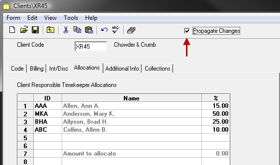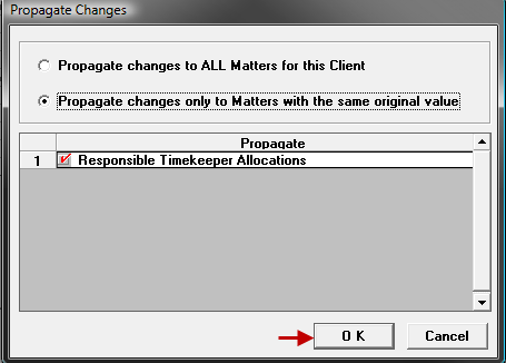 If changes made are to be propagated to the Matters for that Client, then place a checkmark beside the Propagate Changes option. Click the OK button to continue.