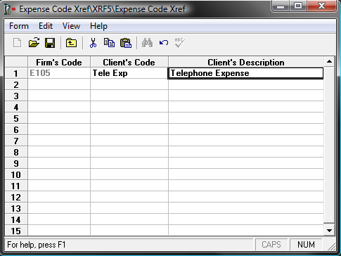 - Mapping Expense Codes: Expense codes are entered into Expense Code Cross Reference Lists. These lists establish a relationship between your Firm Expense Codes and the corresponding Client Expense Codes. For example, your firm’s Expense Code for copy expenses might be E101, but a particular client may require that the code COPY is used on their bills.