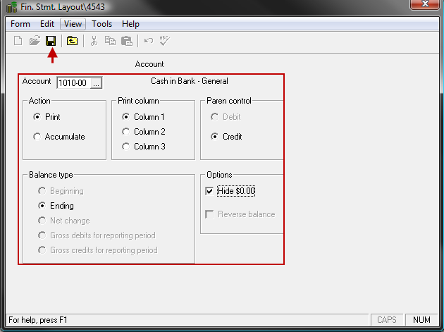 Select the Paren control (Parenthesis control) option (Debit or Credit) you need to use. (Whether to use parenthesis when the balance is a Debit or when its a Credit.)
