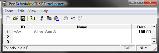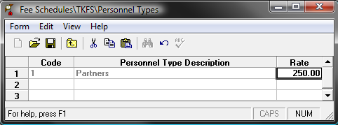 The Fee Schedule might be set up to use Timekeepers, Personnel Types or Task Codes.