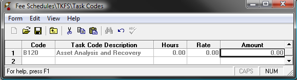 - Click the Lookup icon on the toolbar to select a Task Code from the list of available Task Codes.