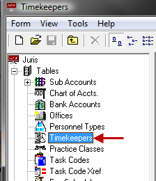 Timekeepers are employees who track and bill their worked time. While an employee can be both a Juris user and a timekeeper, note that a timekeeper does not have to be a Juris user (i.e., a Juris user ID is not required to be entered as a timekeeper).