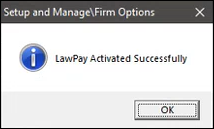 A message will be displayed once LawPay for Juris 4 is activated.