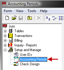 - Select Setup and Manage > Accounting Periods.