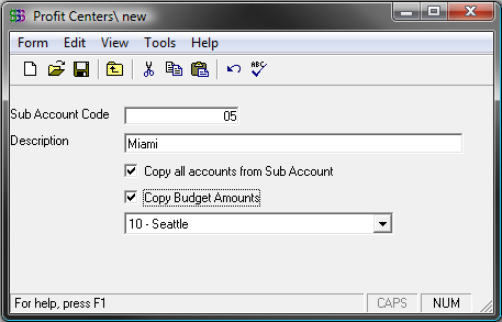 - Use the drop-down list of existing Profit Centers to make a selection to copy from.