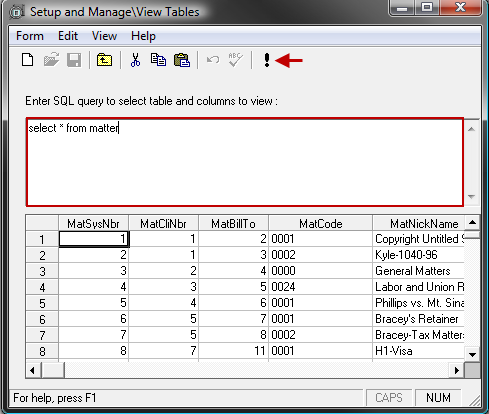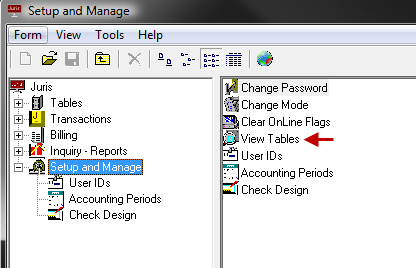 The View Tables feature lets you perform SQL queries on the Juris database.