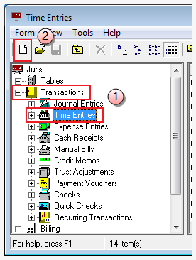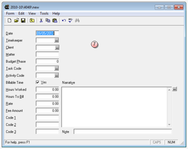 Alternatively, you can select Form > New > Time Entry from the menu.