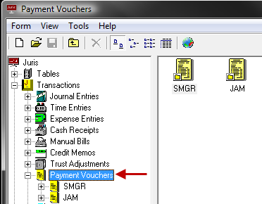 - Select Form > New > Payment Voucher from the menu.