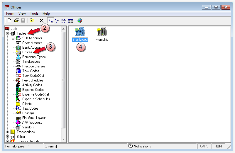 Start Juris and log in to open the main Juris window.