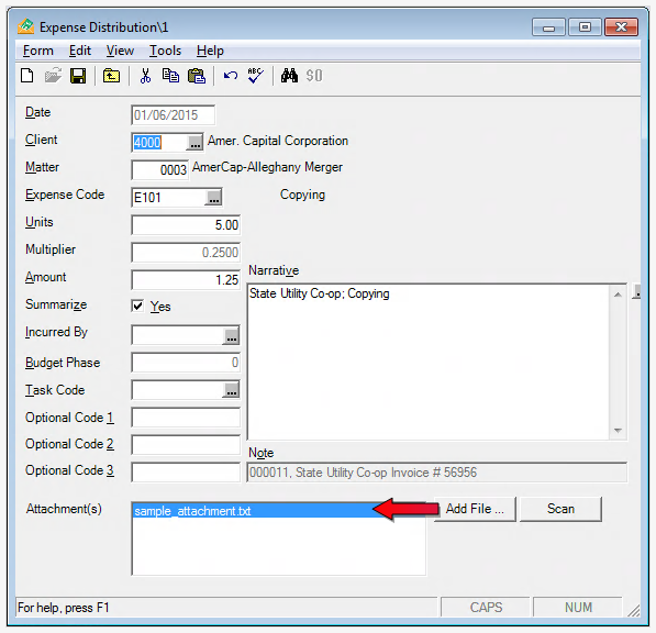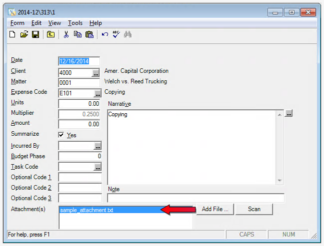 File attachments can be added to expense entries within Juris. Proceed to one of the following topics below for more information:
