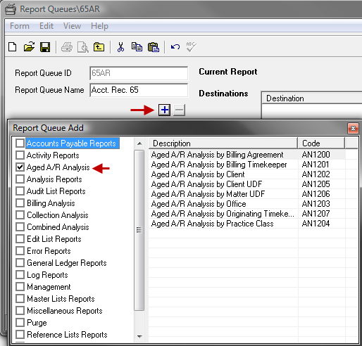 - Click the plus button below the Report Queue Name pane to add reports to the queue.