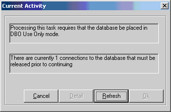 When you try to proceed when Juris is open, this message will be displayed. Once everyone is out of Juris, you can click the Refresh button and continue as long as the number of connections is zero.