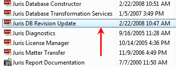 Navigate to the Program Files\Juris\bin folder and double-click the Juris DB Revision Update.exe file.