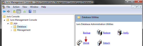 To begin the Shrink utility, click the Shrink link in the Juris Management Console.